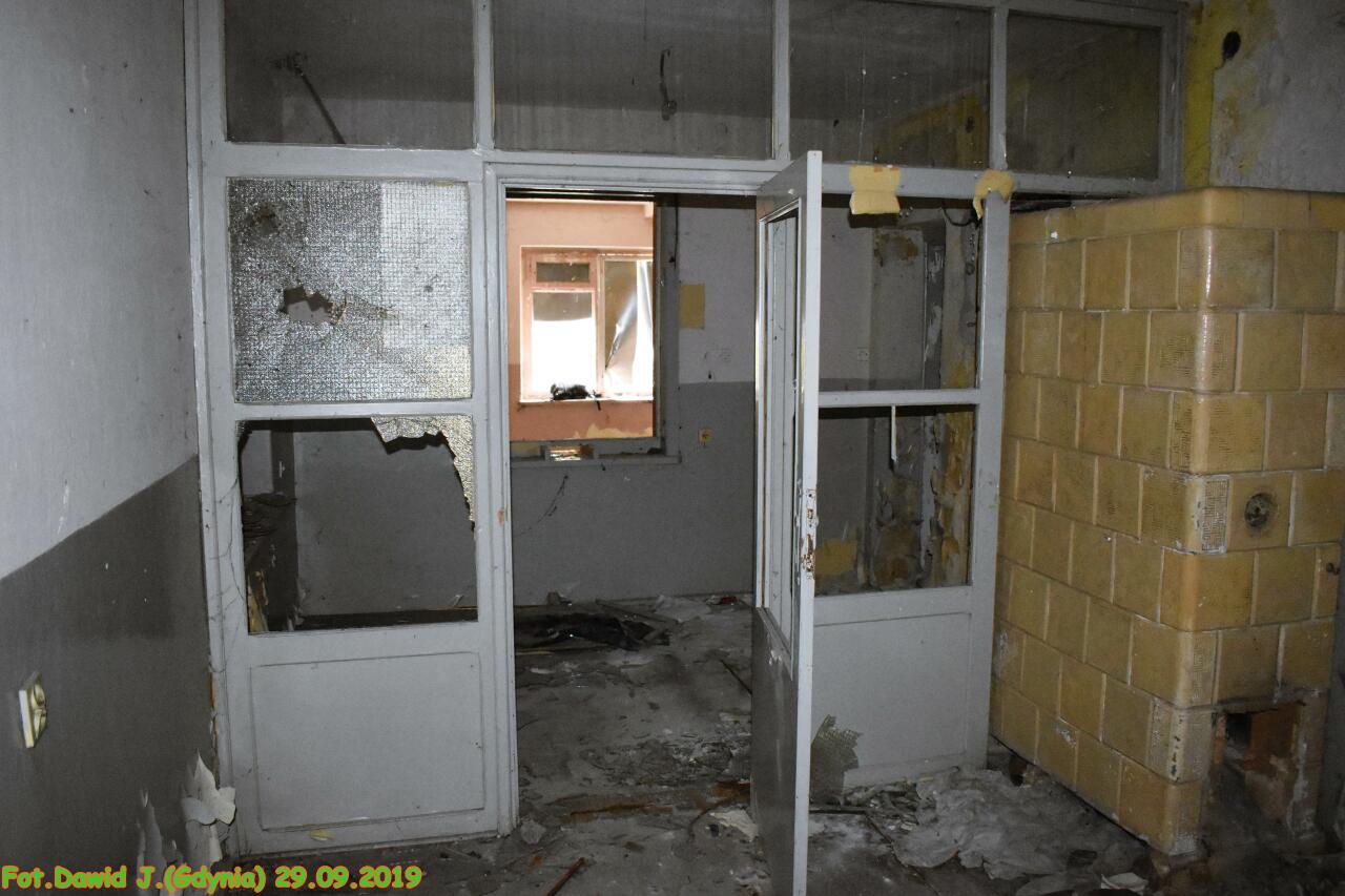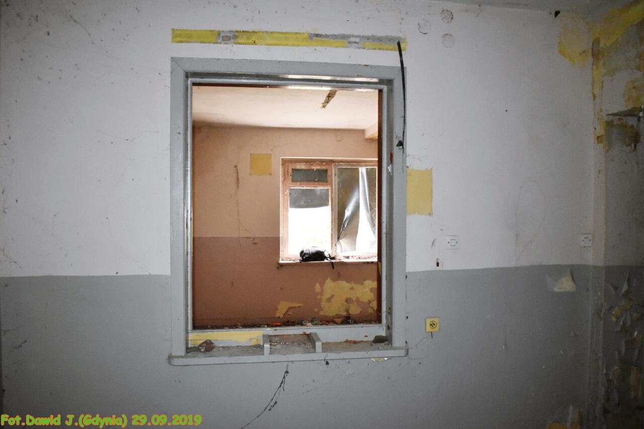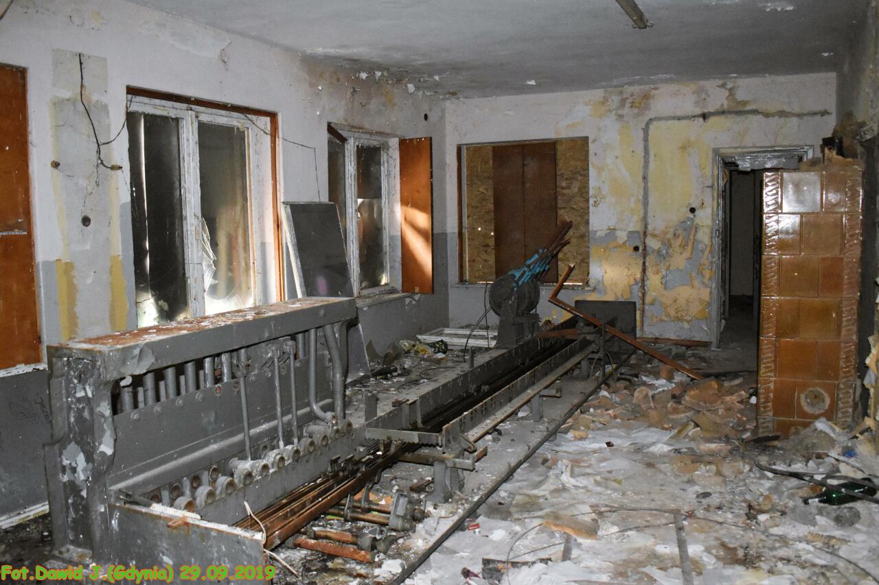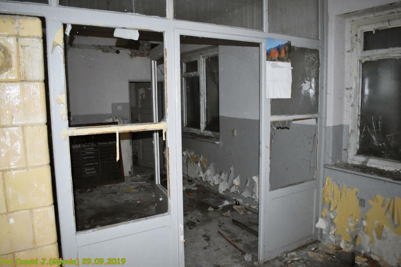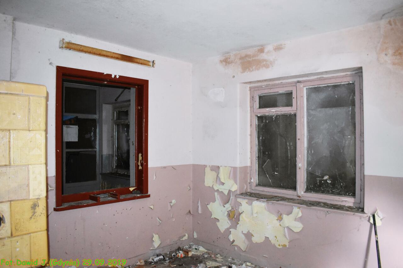 Wnętrze budynku dworcowego. Dawne pomieszczenie pracownika, który obsługiwał kasę biletową. Bardzo istotny detal schowany w tym pomieszczeniu, to ta tablica, która na pierwszy rzut oka, dla osoby zupełnie nie zorientowanej w temacie może mało mówić. Na tej tablicy prawie 20 lat temu prezentowano przyjazdy i odjazdy z czasów zjednoczonego PKP, gdy uruchamiane pociągi były nawet w relacji Chojnice-Działdowo. Podobne tablice występowały na wielu pomorskich dworcach, w galeriach na stronie są zawarte zdjęcia podobnych, takich tablic na stacjach: Sierakowice, Żelistrzewo lub Somonino. Prawdziwy rarytas, mam nadzieje, że nie zostanie zniszczona i trafi wkrótce w dobre ręce.