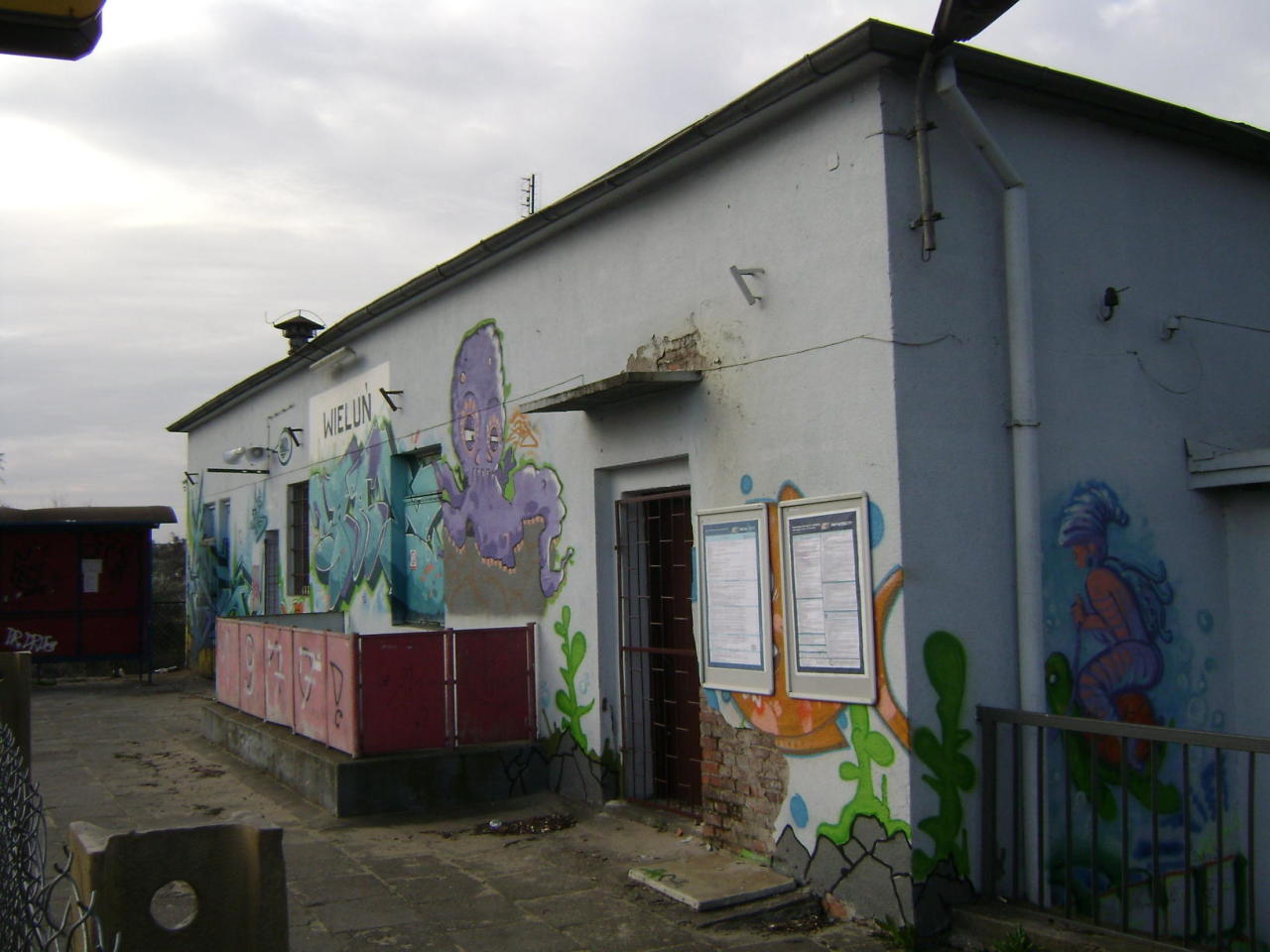 "Wieluń Miasto powstało przy współudziale władz miasta z uwagi na odległość do dworca Wieluń Dąbrowa, która obecnie nie ma znaczenia z uwagi na komunikacje miejską. Dwa tory boczne choć zostały rozebrane. Były również bocznice do zakładów mieszczących się w pobliżu. Obecnie nieczynne za jednym wyjątkiem. W okresie do 1990 roku miesięcznie rozrządzano i rozładowywano na stacji około 3000 tysiące wagonów towarowych."