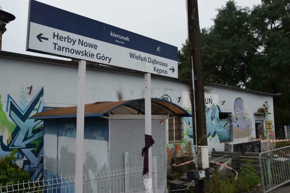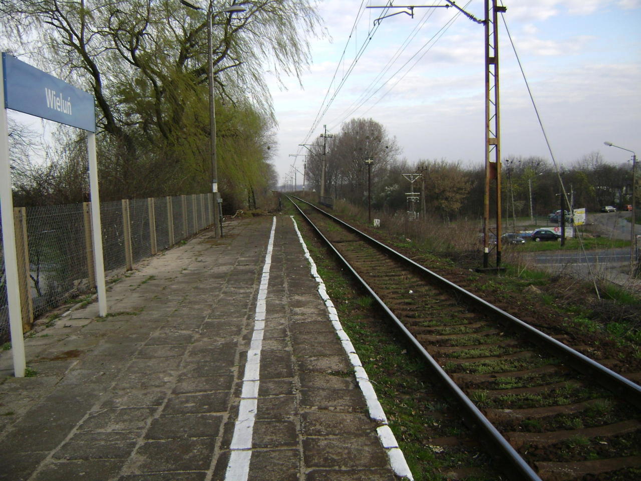 Przystanek Wieluń, peron i widok w kierunku Herbów Nowych.