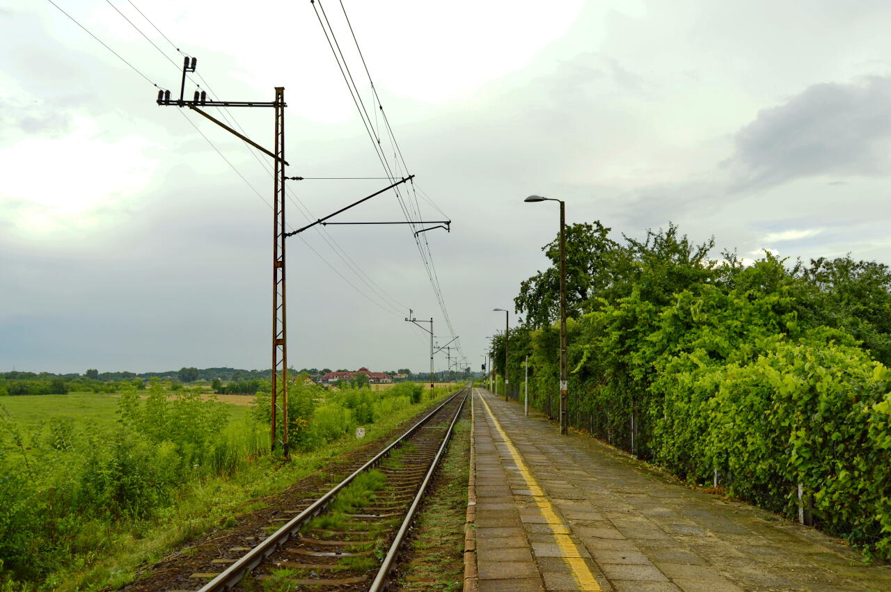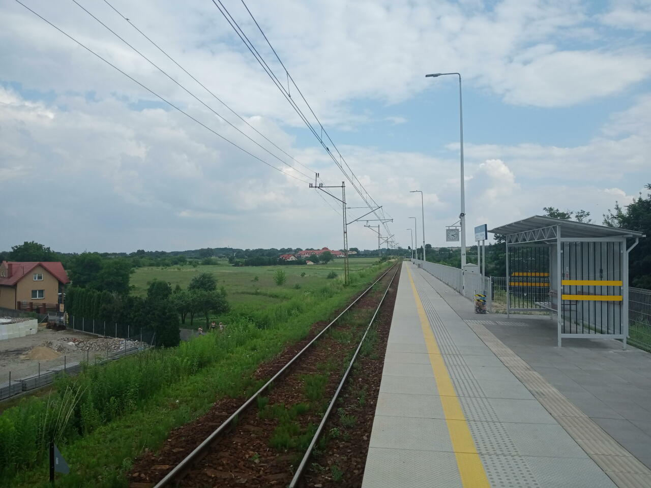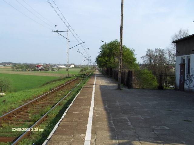 Po prawej stronie linii są tylko pola jak pamiętam od lat więc nie mogło tu być terenu stacyjnego.