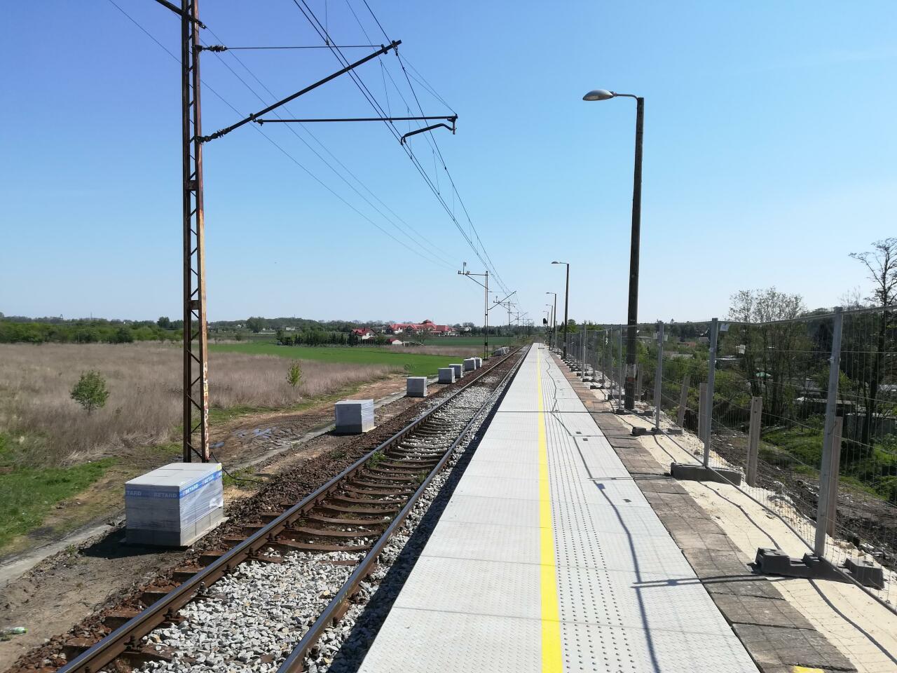 Widok z przystanku w stronę Herb Nowych. Pozostało ułożyć jeszcze nowe płytki, które leżą po drugiej stronie toru.