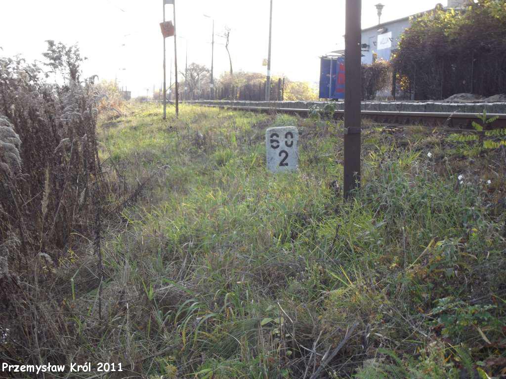 Słupek kilometrażowy wskazuje 60,2 kilometr od Herbów Nowych.
