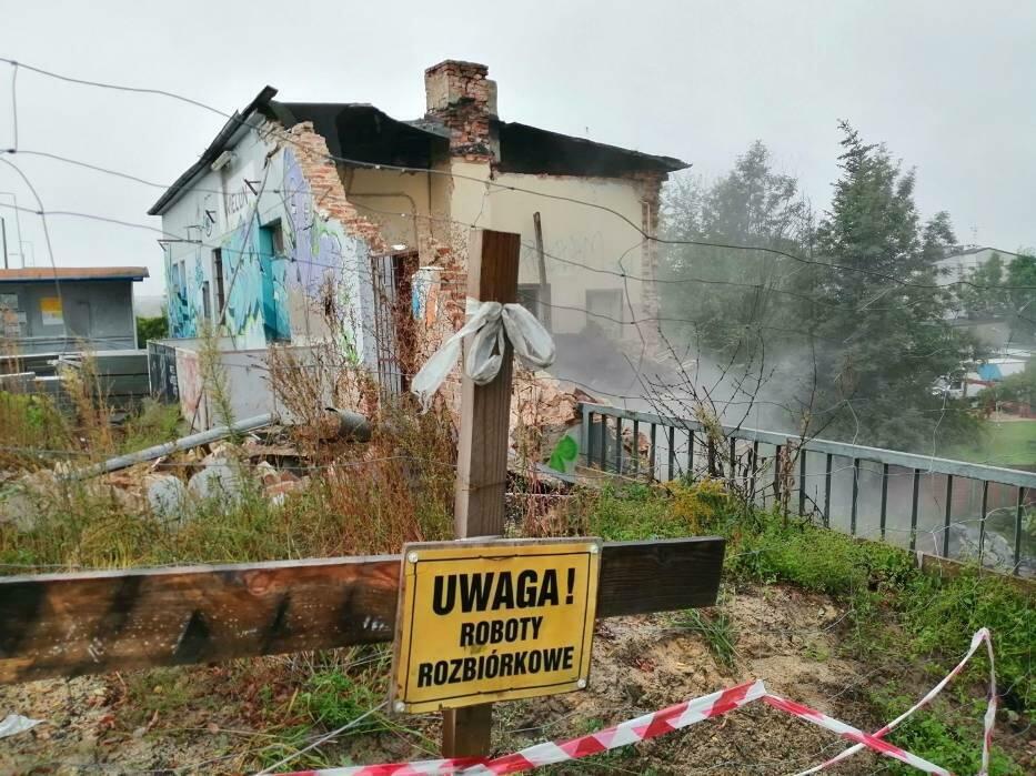 Ostatnie chwile budynku poczekalni przed wyburzeniem.