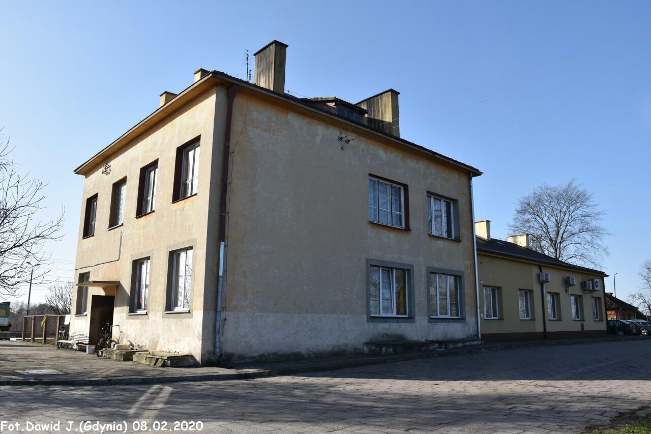 Stacja PKP Drzewica. Budynek dworcowy. Widok od strony zachodniej.