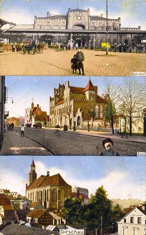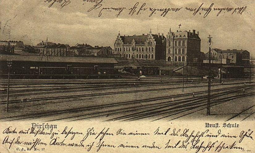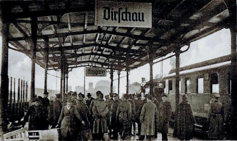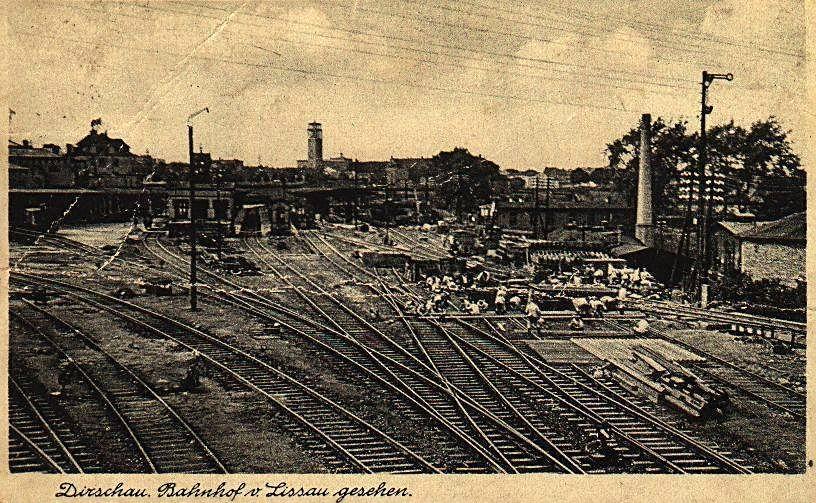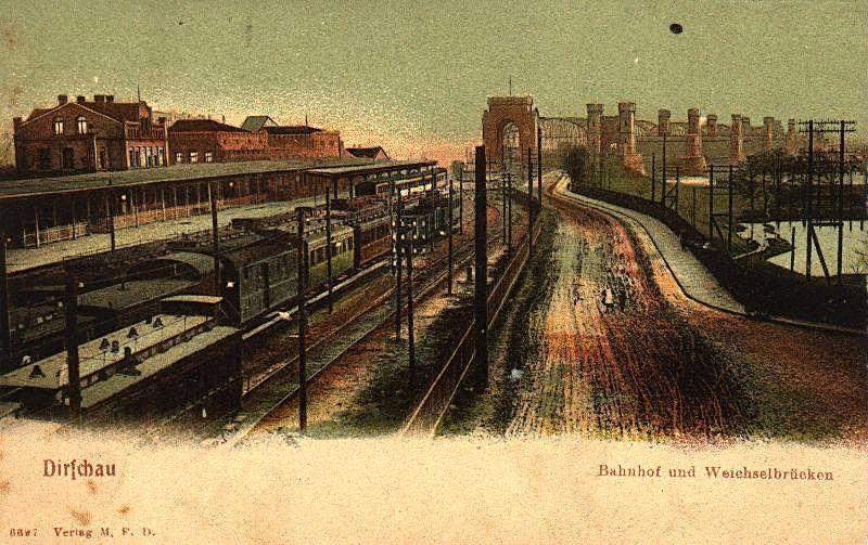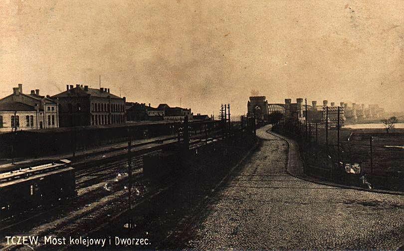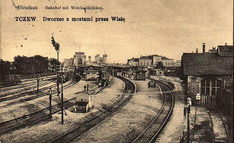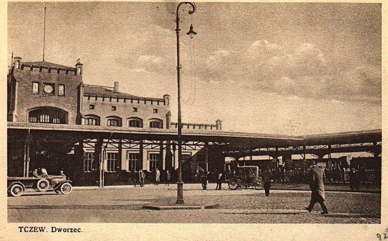 Przedwojenna pocztówka dworca kolejowego w Tczewie.