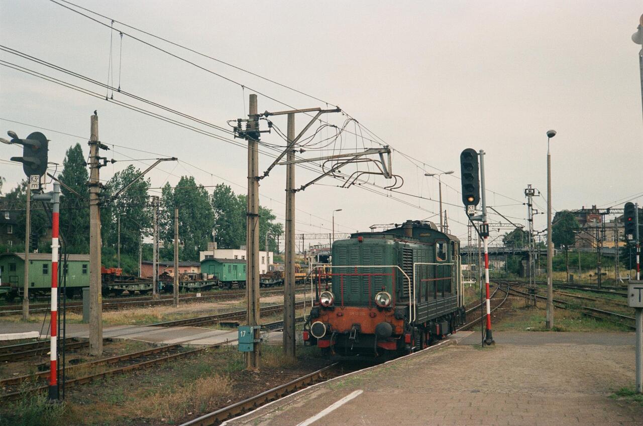 Stacja Tczew - tor 1, peron 3 - lokomotywa SM41-236 (MT Zajączkowo Tczewskie) na manewrach stacyjnych. Widok w kierunku stacji Szymankowo (Warszawa Wschodnia), Morzeszczyn (Chorzów Batory).