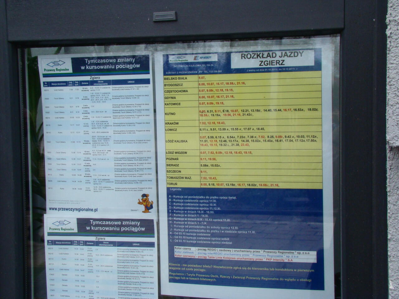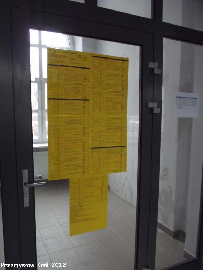 Rozkład jazdy 2011/2012, wiszący wewnątrz głównego budynku stacji.