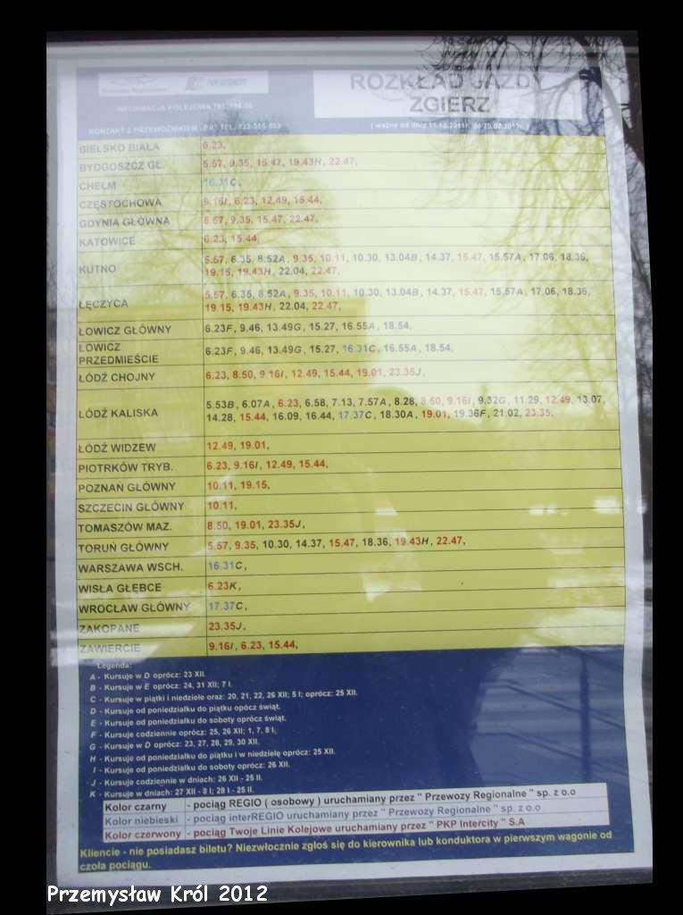 Zgierz. Tablica rozkładu jazdy 2011 rok.