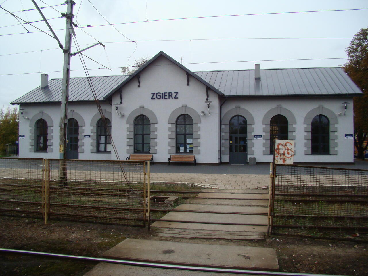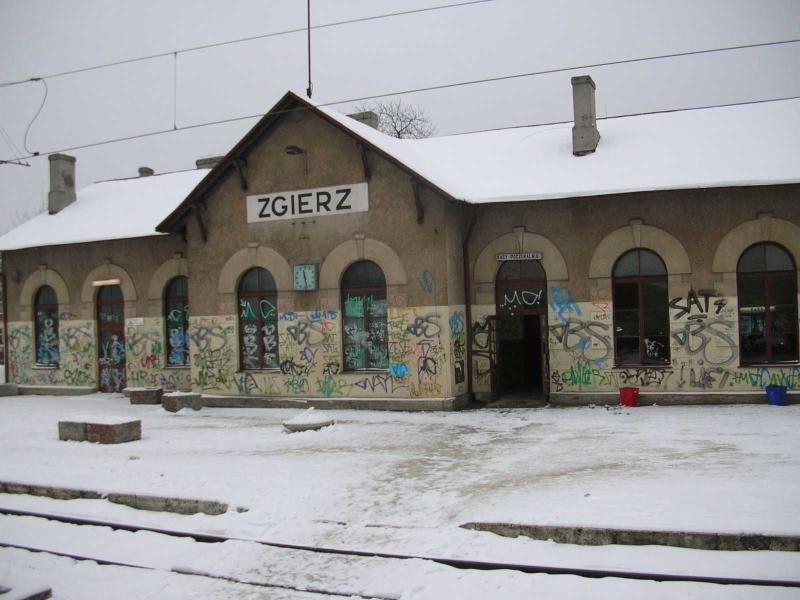 Zgierz, dworzec. Widok od strony torów. W lewo Łódź, w prawo Kutno i Łowicz.