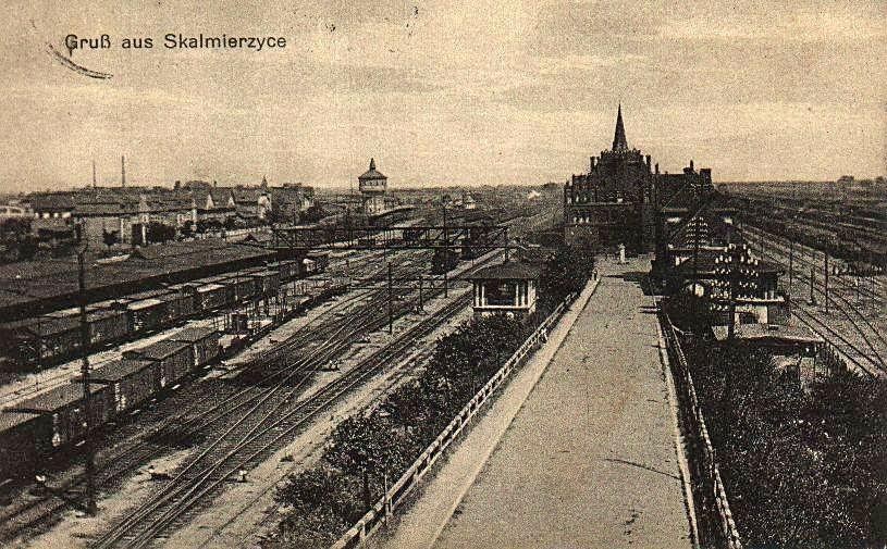 Stacja powstała prawdopodobnie w 1906 roku, wraz z linią do Kalisza. Stary dworzec znajdował się w centrum miasta (pl. Wolności). Na całej stacji pozostało sporo śladów po górce rozrządowej (m.in. nastawnia i i układ terenu), która została zlikwidowana prawdopodobnie po oddaniu do użytku stacji Poznań Franowo. (info: Dawid Krysiński) Spotkałem się z informacją, że w okresie przed 1918 r. od strony Warszawy i Kalisza dochodziła do stacji linia szerokotorowa (rosyjska) i jej potrzebom służył peron od strony południowej dworca, który dzisiaj nie istnieje, a teren jest już zabudowany. Pasażerowie przesiadali się do pociągu pruskiego (1435 mm), przechodząc przez halę odpraw celno-paszportowych w budynku dworca. Tuż przed I wojną światową, dla usprawnienia ruchu towarowego jeden "pruski" tor doprowadzono do Kalisza i na tym odcinku linia była 3-torowa. Mogłyby o tym świadczyć wiadukty i przepusty, na których do dziś widać jedno "wolne" miejsce na dodatkowy tor. (info: Paweł Bryk, 01-07-2008) Stacja, która powstała w Nowych Skalmierzycach pod rządami pruskimi była stacją graniczną z Cesarstwem Rosyjskim. Wielkość tej budowli miała służyć w zamyśle nie tyle względom czysto praktycznym co psychologiczny: obrazować siłę Niemiec i wywierać silne wrażenie na wjeżdżających tą drogą mieszkańcach Cesarstwa Rosyjskiego. (info: Michał N, 2005-08-24) Opis infrastruktury: Stacja zaniedbana lecz do użytku tory używane do transportu pasażerskego, towarowego. (info: Skalmierzanin, 2006-03-24) Przejście nadziemne w Nowych Skalmierzycach nad torami kolejowymi było i jest widoczne na jednej z fotografii w galerii. Obecnie ta kładka jest wykorzystana w Ostrowie Wielkopolskim (cześć tej kładki jest z N.Skalmierzyc). (info od: Kazimierz Mocek, 2010-04-11) Opis budynków: Dworzec w stylu neogotyckim, kasa biletowa pasażerska i towarowa czynna. Budynek w stylu neogotyckim z 1906 roku otwarcie w 1909 roku. Dawniej dworzec tętnił życiem jako stacja graniczna miał wystrój i restauracje o identycznym statucie jak w Berlinie i Wiedniu. W 1913 spotkali się tu Wilchelm II i Mikołaj II (info: Skalmierzanin, 2006-03-24). |