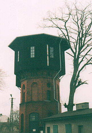 Unisław Pomorski. Wieża wodna widok z ul. Dworcowej.