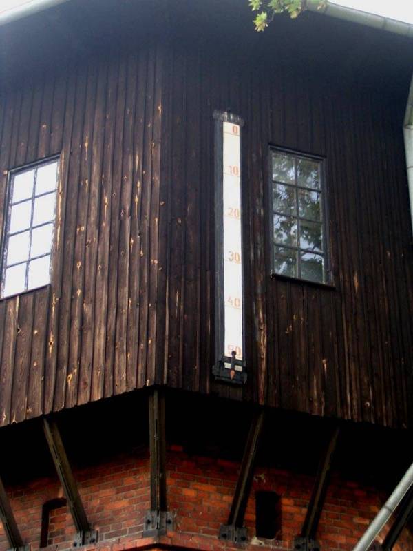 Unisław. Wskaźnik poziomu wody w zbiorniku wieży wodnej.