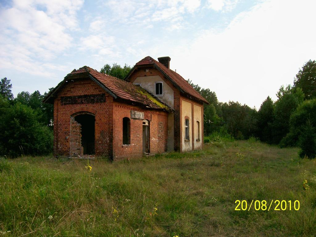 Opis infrastruktury: Linia rozebrana w ok. 1994 roku (info: Piotr Burczyk, 25-10-2010) Opis budynków: Budynki pozostawione na pastwę losu. Zdewastowane w coraz gorszym stanie. Zniszczone okna i drzwi. Budynek stoi samotnie otoczony lasem, więc jego przyszłość rysuje się w czarnych barwach. Pozostały tylko niemieckie nazwy stacji, po naszych już nie ma śladu. Przy zjeździe z drogi Bukowo-Krąpiel wciąż stoi stacyjna skrzynka na listy!. (info: Piotr Burczyk, 25-10-2010). |