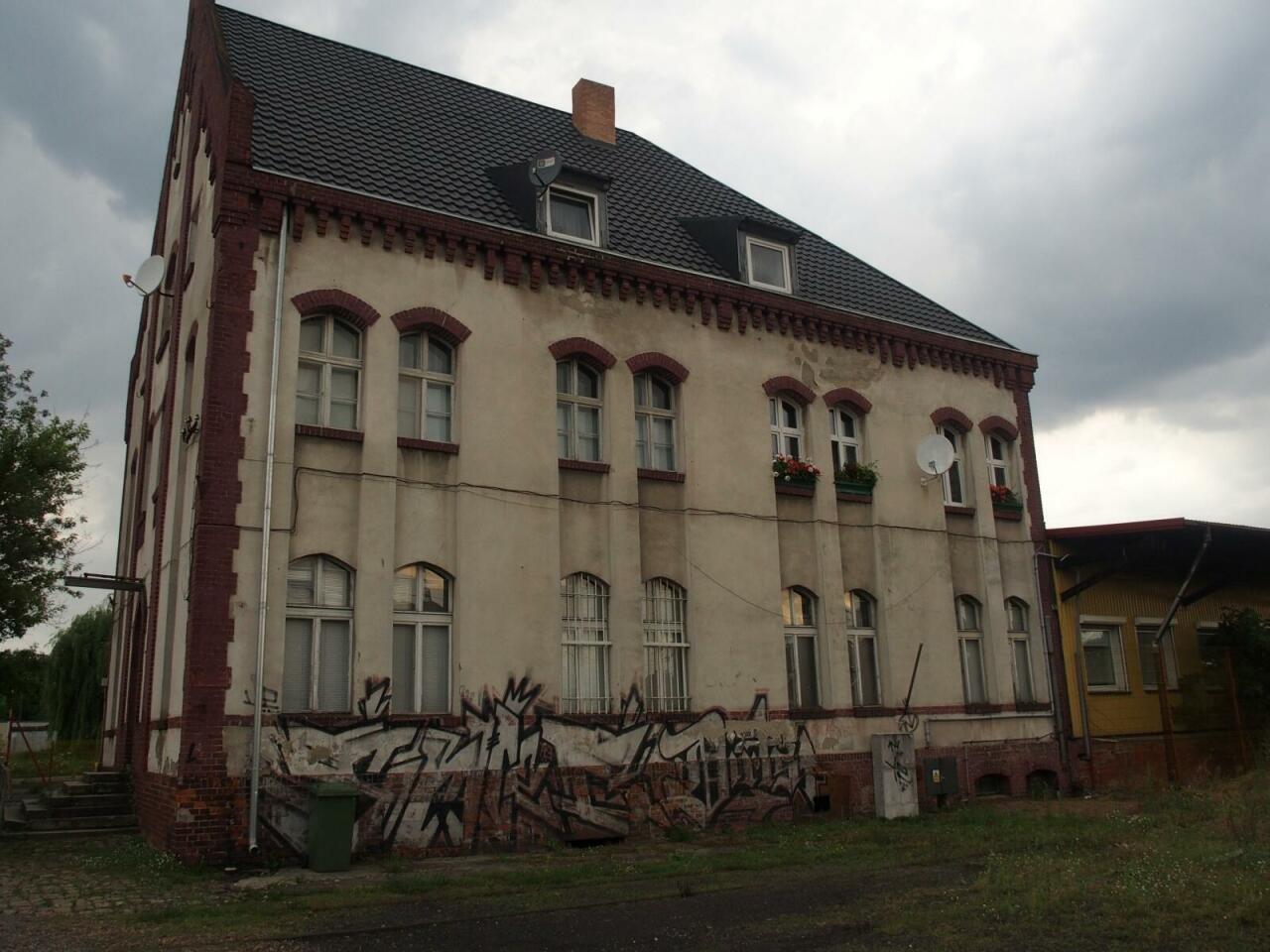 budynki obsługi taboru: 2020-09-07: W dawnej lokomotywowni stacjonuje sekcja PKP PLK. Obrotnica sprawna, w hali drezyny, część biurowa nadal funkcjonuje. Teren ogrodzono.