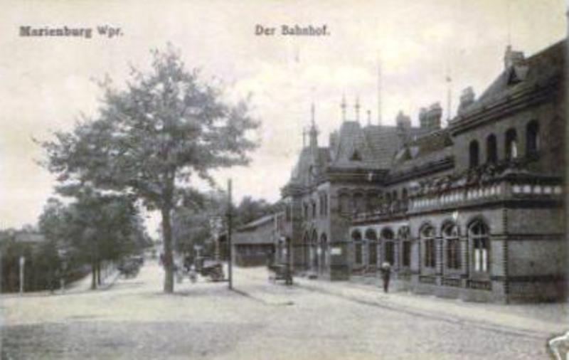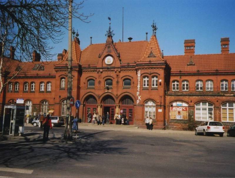 Budynek dworca w Malborku. Widok od strony podjazdu.