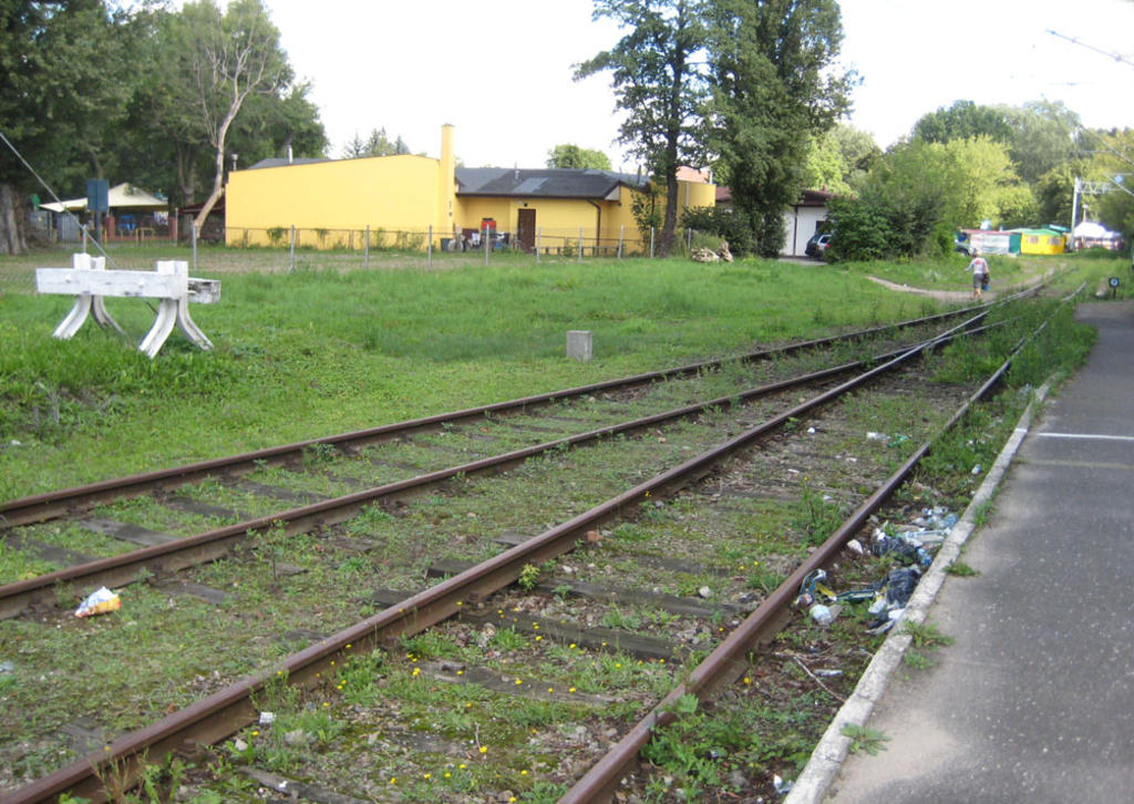 Koniec toru zasadniczego. Po lewej stronie toru prowadziła kiedyś bocznica do zakładów przemysłowych.