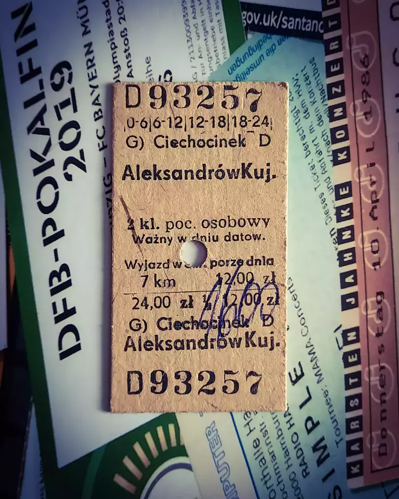 Bilet kartonikowy wydany na stacji Ciechocinek.