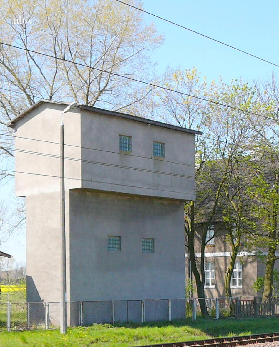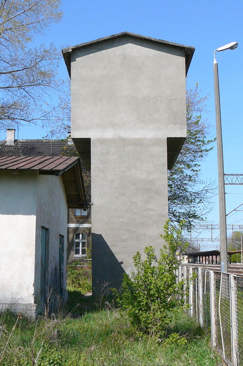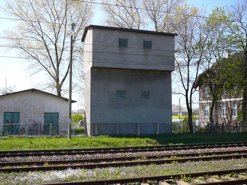 Szymankowo. Wieża wodna, ok. 200 m na wschód od stacji kolejowej. Widok od strony torów.