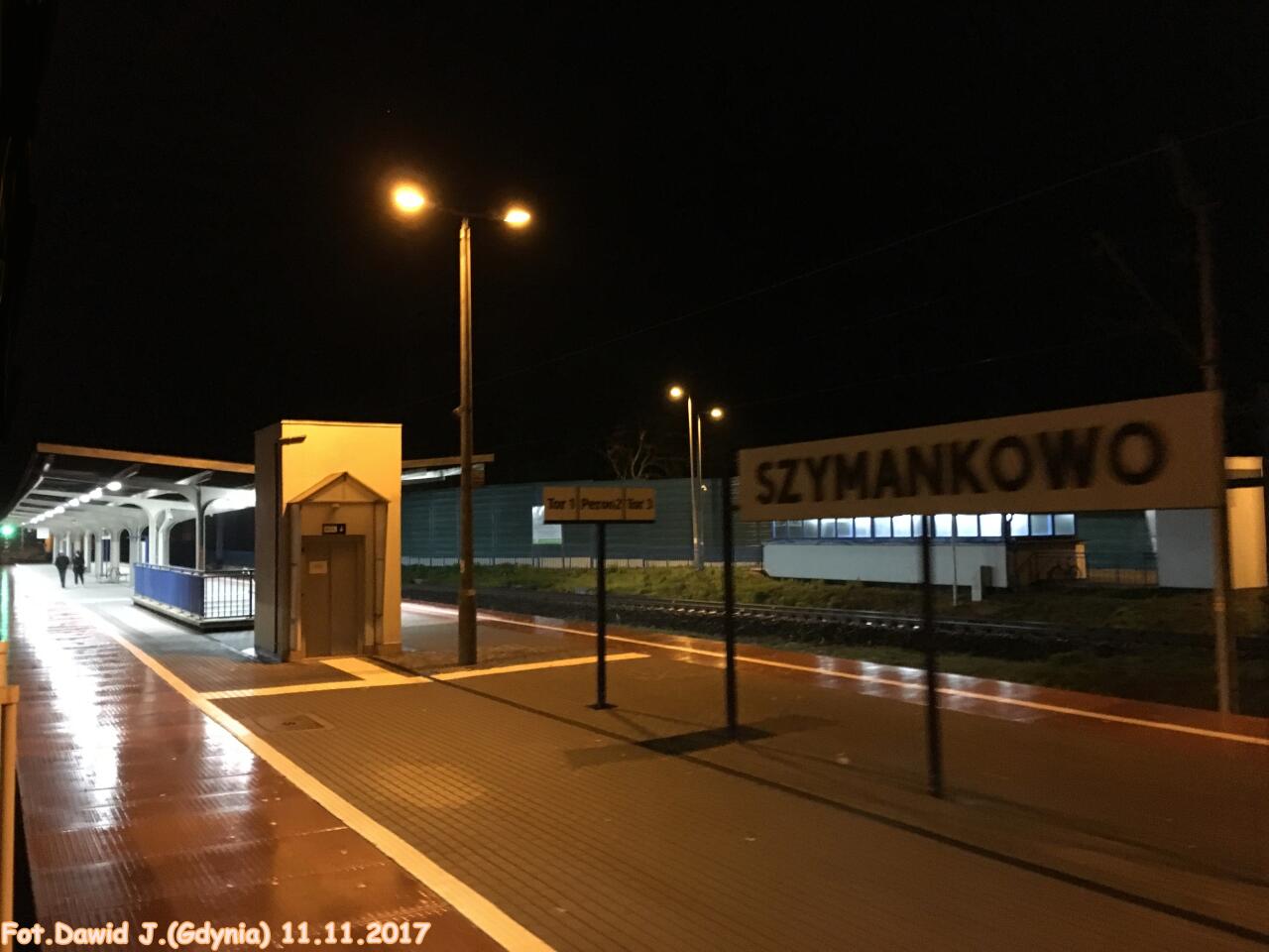Szymankowo. Nazwa stacji na peronie.