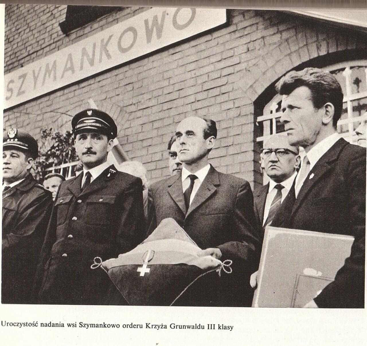 Uroczystości na stacji z okazji odznaczenia wsi Krzyżem Grunwaldu III klasy za bohaterską postawę w walce z niemieckim najeźdźcą.