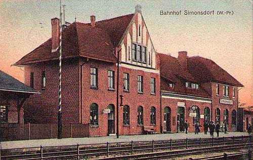 Budynek dworcowy widoczny od strony torów. W lewo Tczew, w prawo Malbork i Nowy Dwór Gdański.
