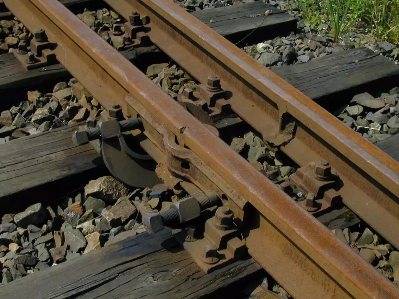 Prowizoryczna naprawa pękniętej szyny. Dokładna lokalizacja na terenie stacji NML nieznana.