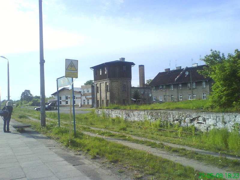 Wieża wodna - widok od strony peronów.widok ogólny z peronu I - kierunek Olsztyn.