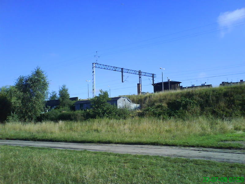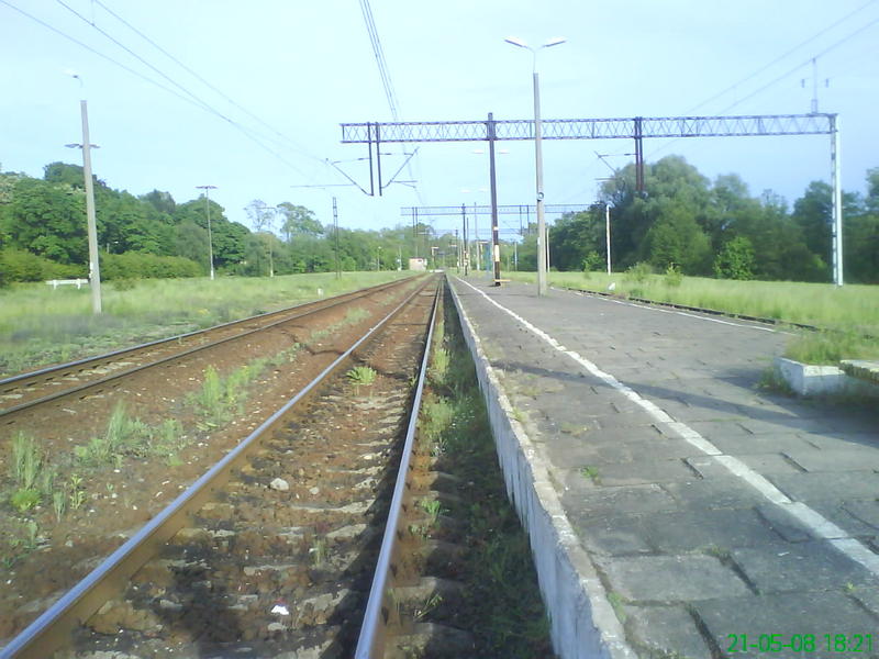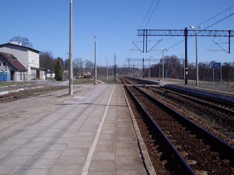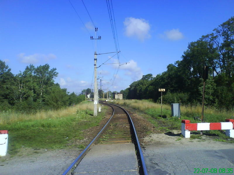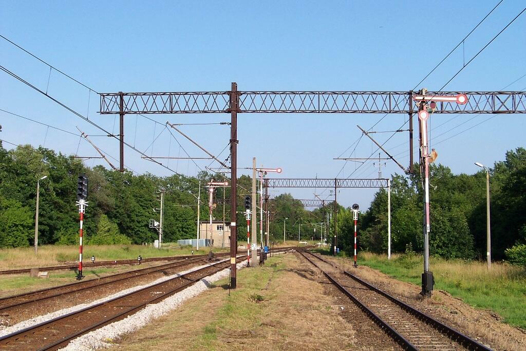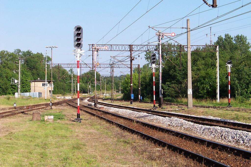 Linia 220. Widok z przejazdu kolejowego w stronę stacji.Widoczna także nastawnia dysponująca.