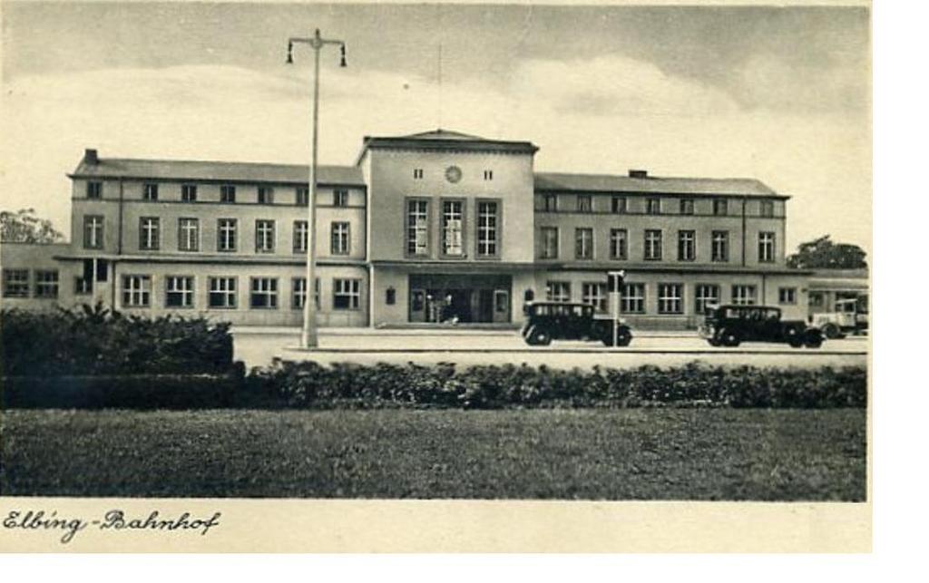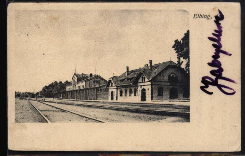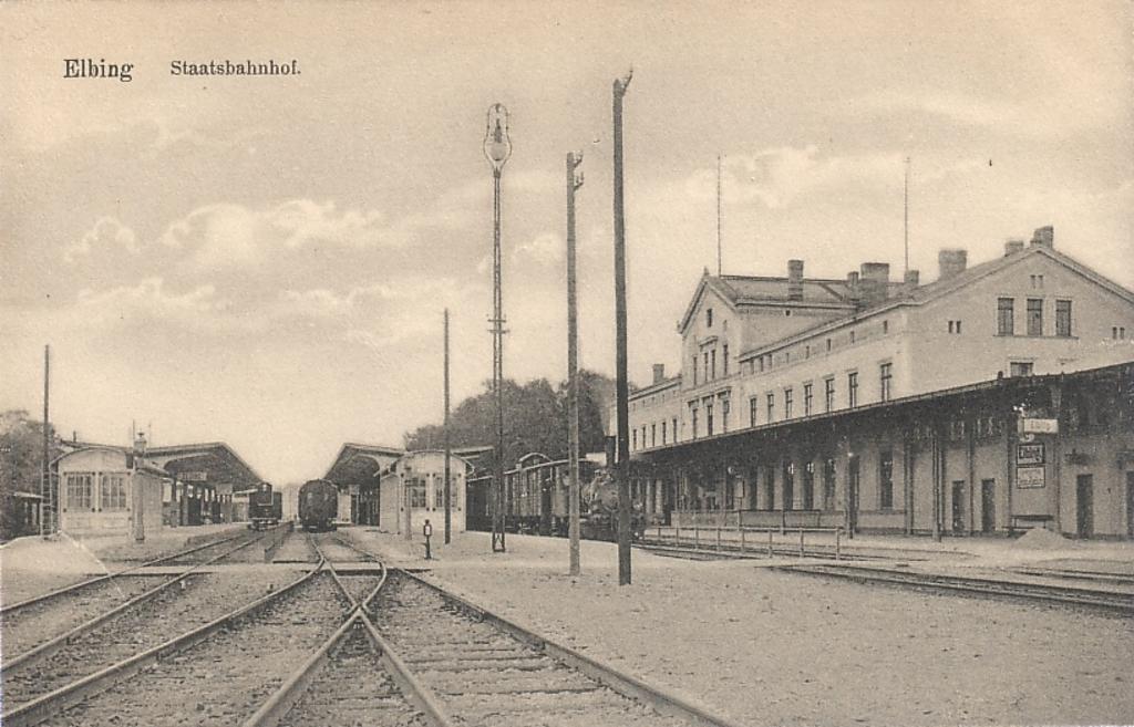 Dworzec w Elblągu na starej pocztówce.