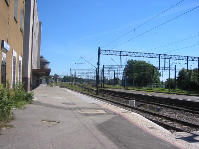 Widok na perony i budynek dworca w kierunku zachodnim (Malbork, Braniewo).
