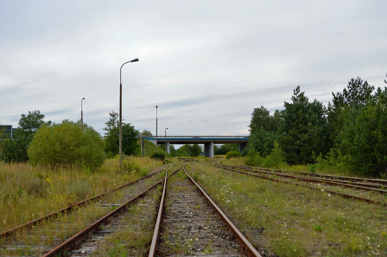 Widok w kierunku Miasteczka Śląskiego/Tarnowskich Gór. W tle wiadukt drogowy w ciągu ul. Warszawskiej.