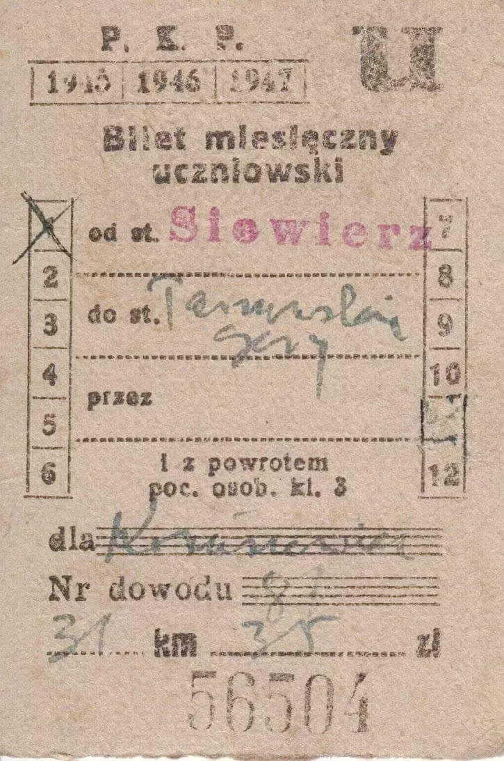 Bilet miesięczny uczniowski wydany na stacji Siewierz.