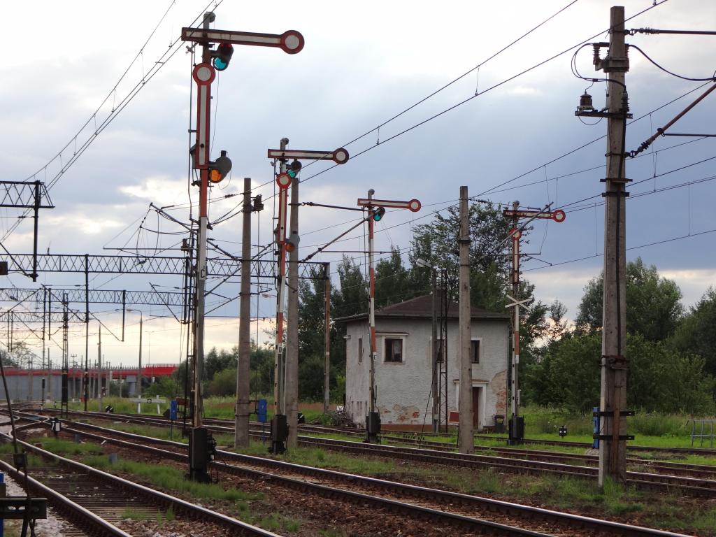 Wschodnia głowica rozjazdowa; wyjazd na Elbląg. Widoczne wszystkie cztery semafory wyjazdowe. Budynek służby drogowej (magazyn i schronisko). Widok w kierunku Elbląga. 41,2 km/ 85,3 km.