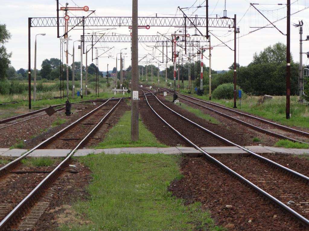 Wschodnia głowica rozjazdowa; wyjazd na Elbląg. Po lewej nastawnia dysponująca Bc. Po prawej budynek służby drogowej (magazyn i schronisko). W lewo Elbląg, w prawo Braniewo i Morąg. 41,1 km / 85,4 km.
