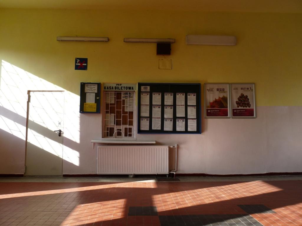 Poczekalnia. Widok na okienko kasowe.