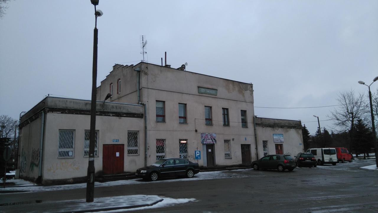 Widok na budynek dworca od strony miasta.