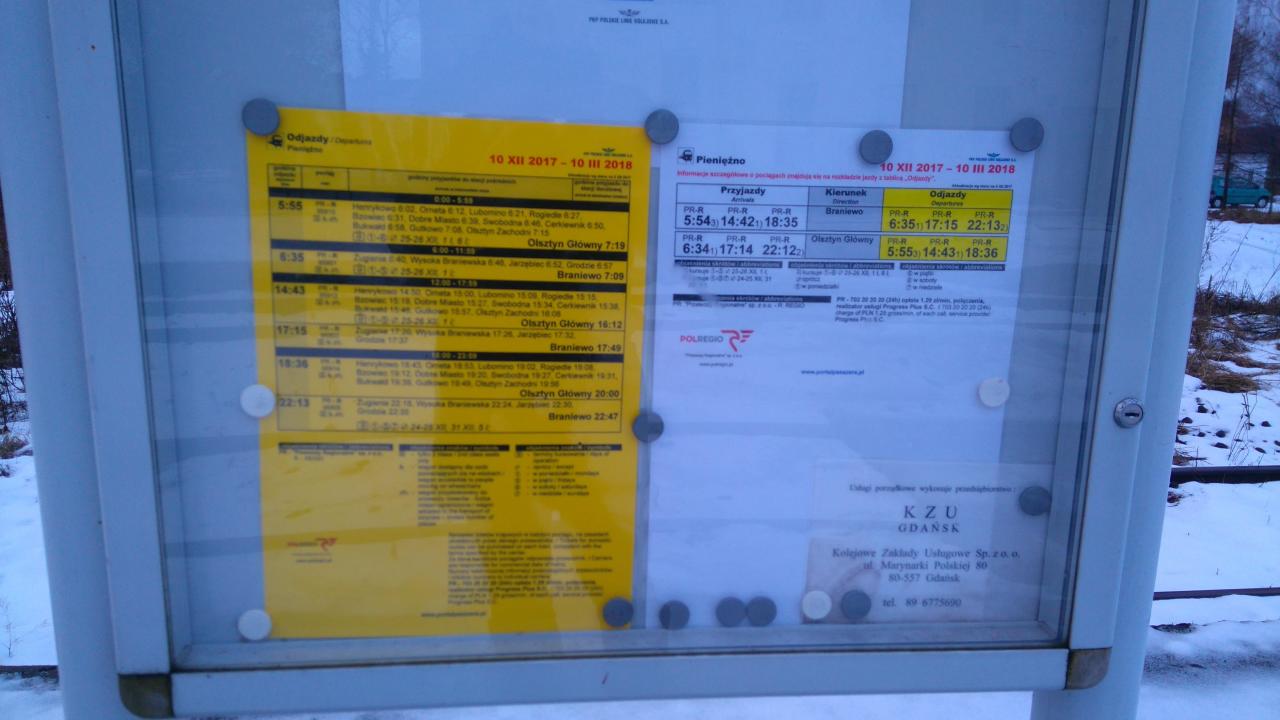 Rozkład jazdy pociągów w Pieniężnie.