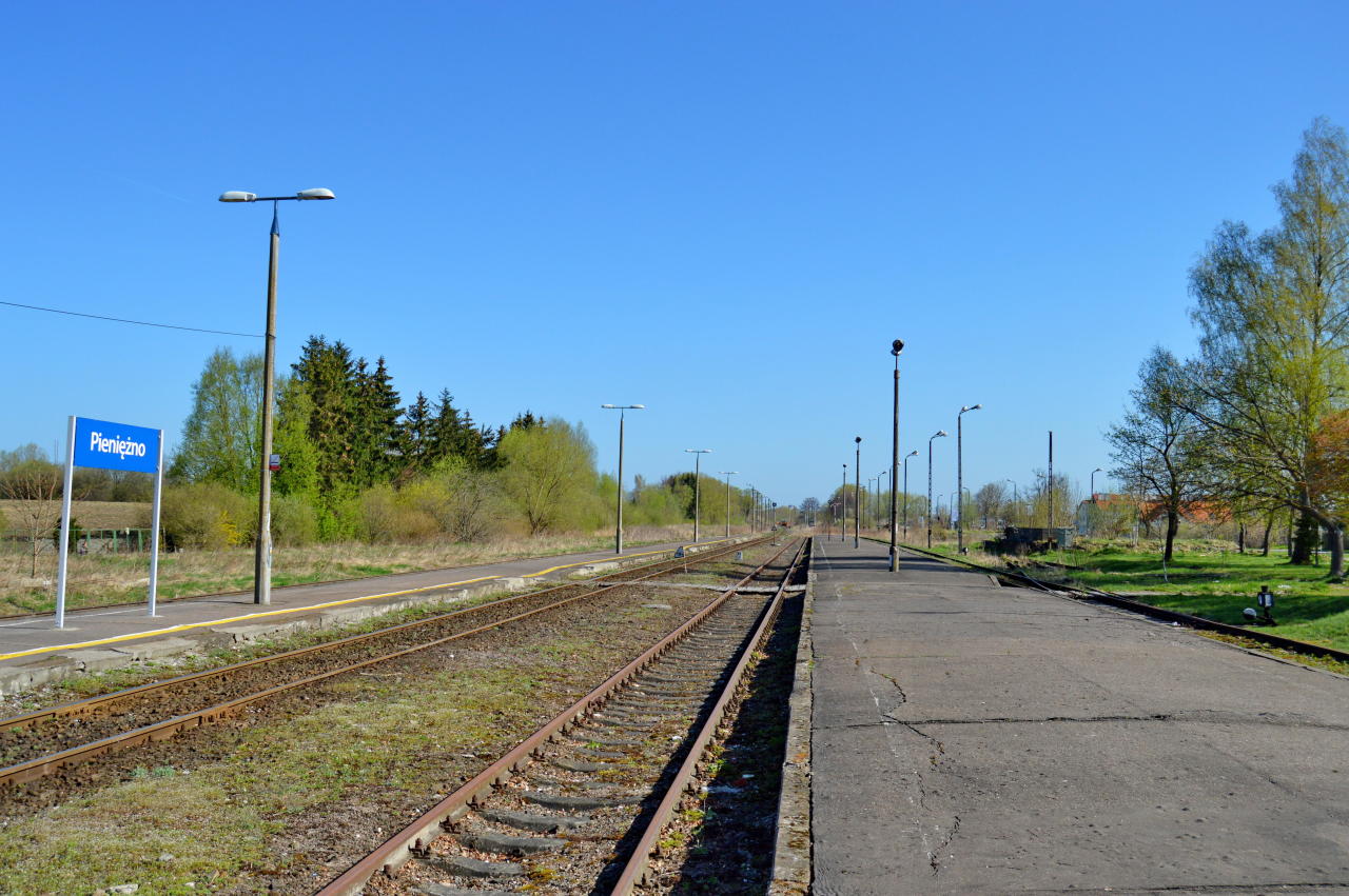 Pieniężno, widok na perony w kierunku Braniewa i (kiedyś) Korniewa (północny-wschód).