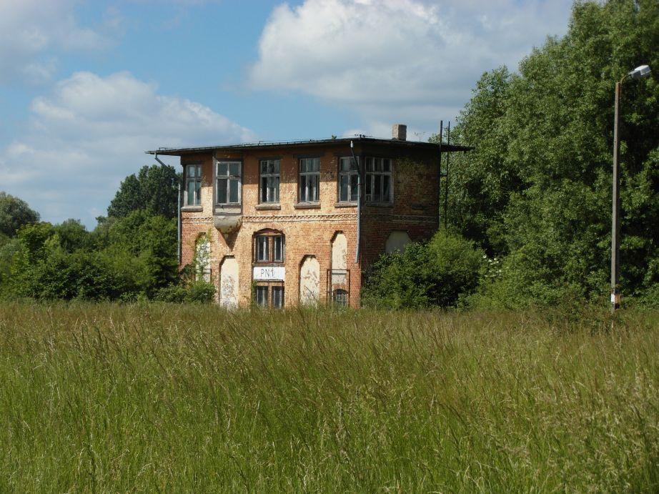 Nastawnia wykonawcza stojąca na wyjazdach do Braniewa i (kiedyś) Korniewa. W prawo perony.