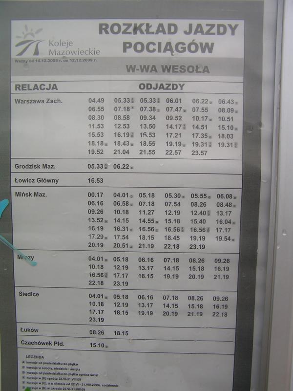 Rozkład jazdy Kolei Mazowieckich ważny od 14-12-2008 do 12-12-2009.