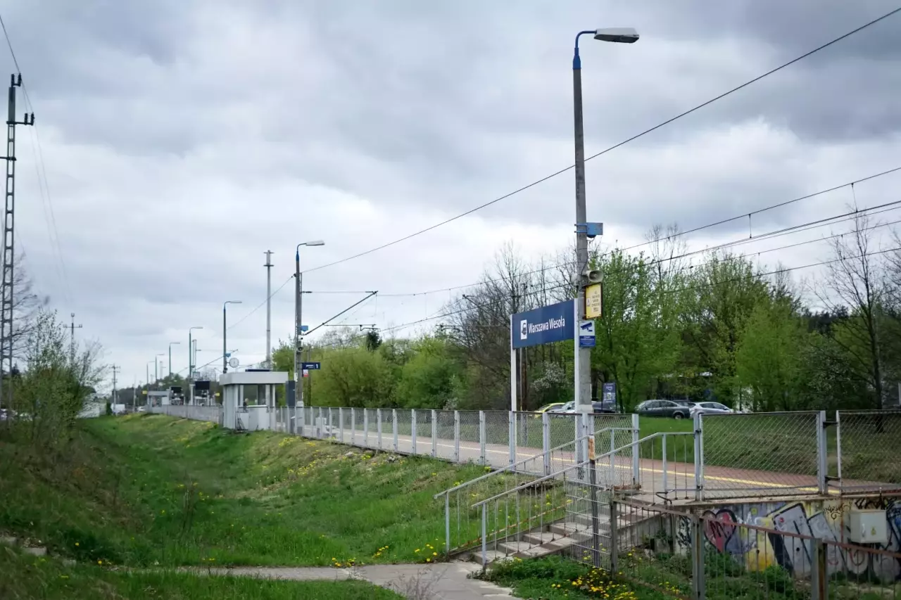 Stary dworzec w Wesołej istniał, jak widać, również po modernizacji i elektryfikacji linii.