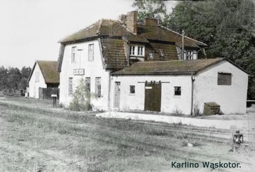Opis infrastruktury: Podczas zamykania linii kolejowej rozebrano małą lokomotywownie, która posiadała dwa kanały. Kanały w latach późniejszych zostały zasypane gruzem i śmieciami.Jak ktoś chce mogę wskazać miejsce gdzie kopać. Tory na stacji Karlino wąskotorowe jak i linia do Gościna zostały rozebrane podczas budowy normalnotorowej bocznicy do przeładunku ropy na wagony na początku lat 80-tych. (info: Grzegorz Tomaszewski, 03-05-2015) Opis budynków: W magazynie na stacji Karlino Wąskotorowe istniała podłoga z podkładów kolejowych. Po wojnie przez przypadek odnaleziono zamaskowane piwnice z całą masą zapasów jedzenia, alkoholu i ubrań. (info: Grzegorz Tomaszewski, 03-05-2015) |
