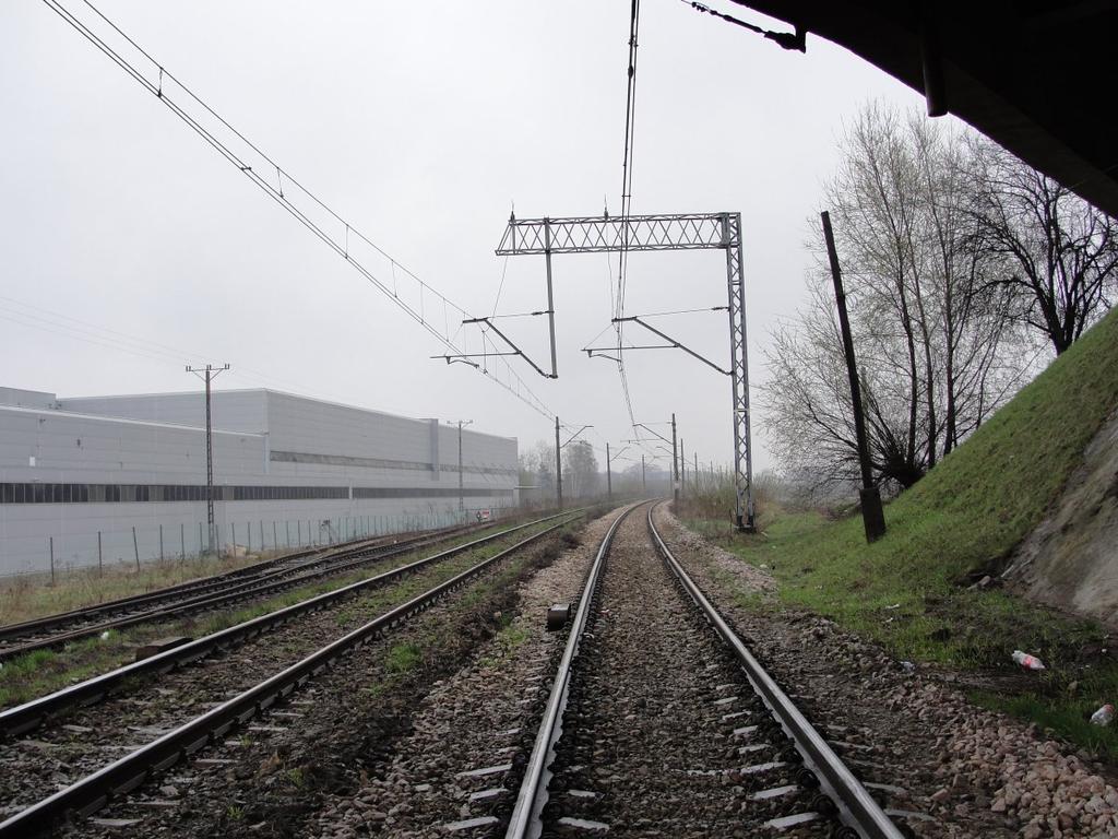 Zdjęcie robione pod wiaduktem drogi krajowej 50, widok w stronę Skierniewic i CMK (zachód).