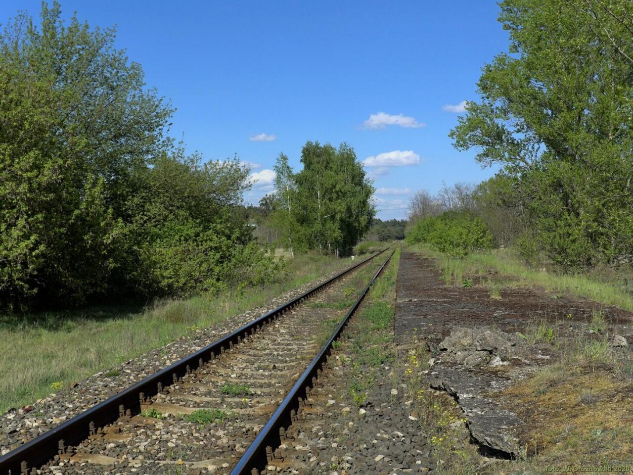 Zniszczony peron przy linii nr 353; widok w kierunku Papowa Toruńskiego.