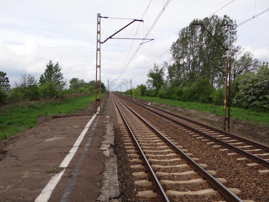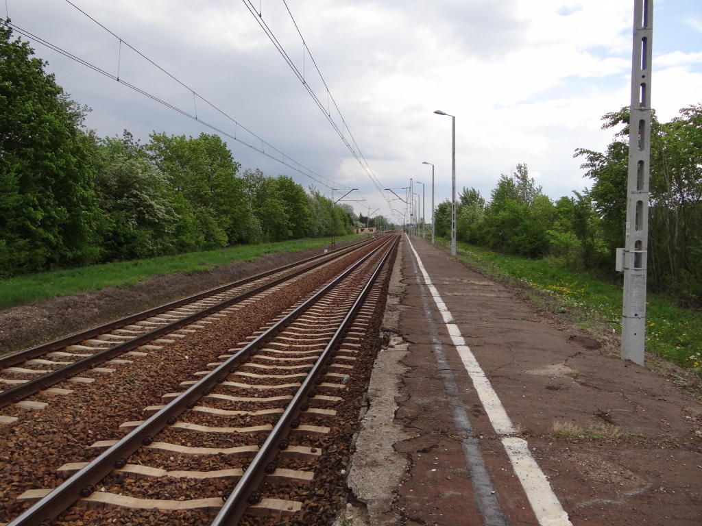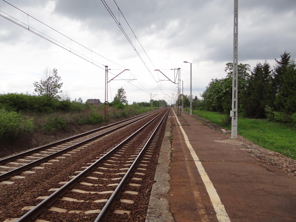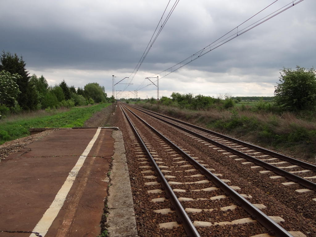 Peron dla pociągów w kierunku Łowicza. Widok w kierunku Skierniewic. 4,1 km.