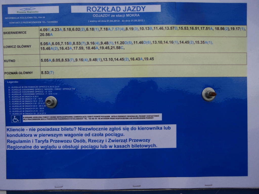 Rozkład jazdy ważny od 1-04-2012 do 31-05-2012. Najdłuższa relacja - Poznań Główny 246 km.
