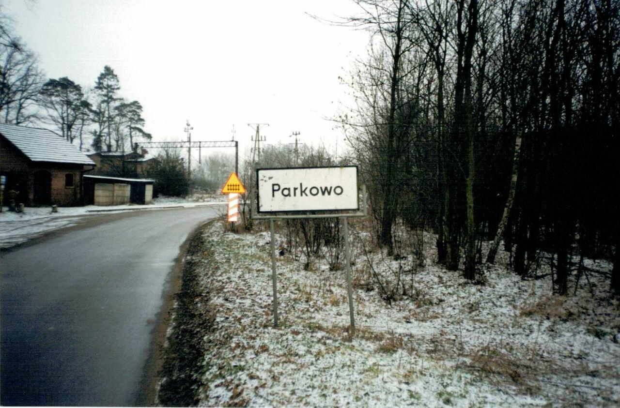 Parkowo - przejazd w sąsiedztwie przystanku kolejowego, na trasie do drogi krajowej nr 11/ Wełna. W lewo Oborniki Wlkp./Poznań, w prawo perony.