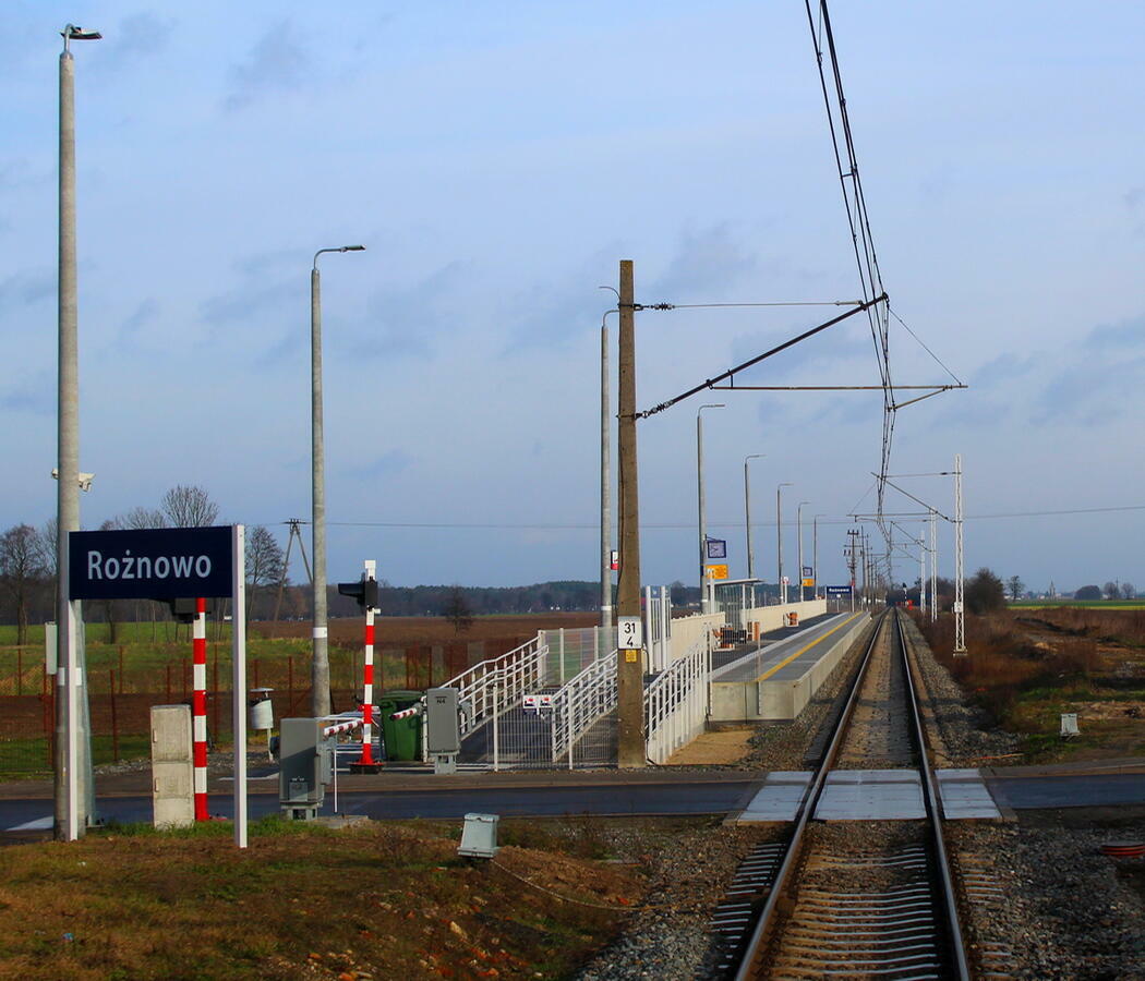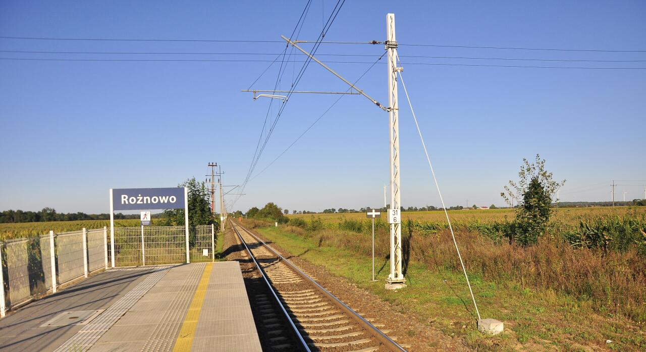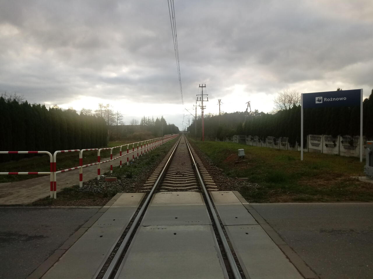 Rożnowo - koniec peronu, przejazd ul. Dworcowa.