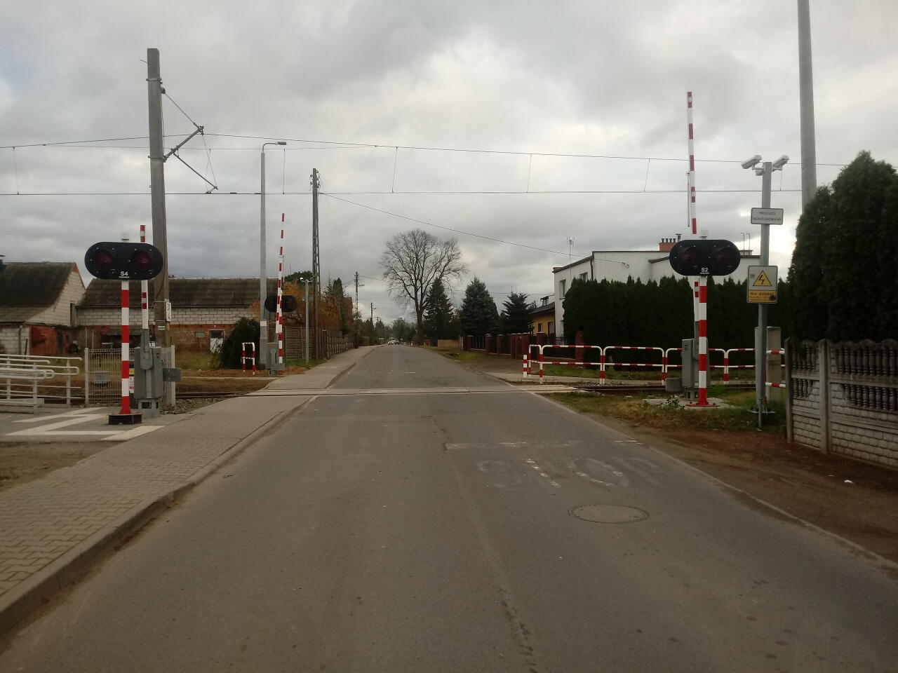 Przejazd kolejowy w Rożnowie (ul. Dworcowa) - widok w kierunku Obornik/Poznania.