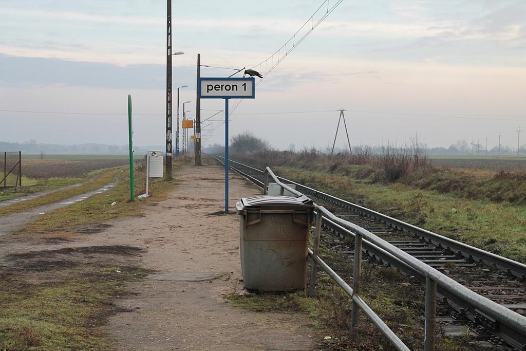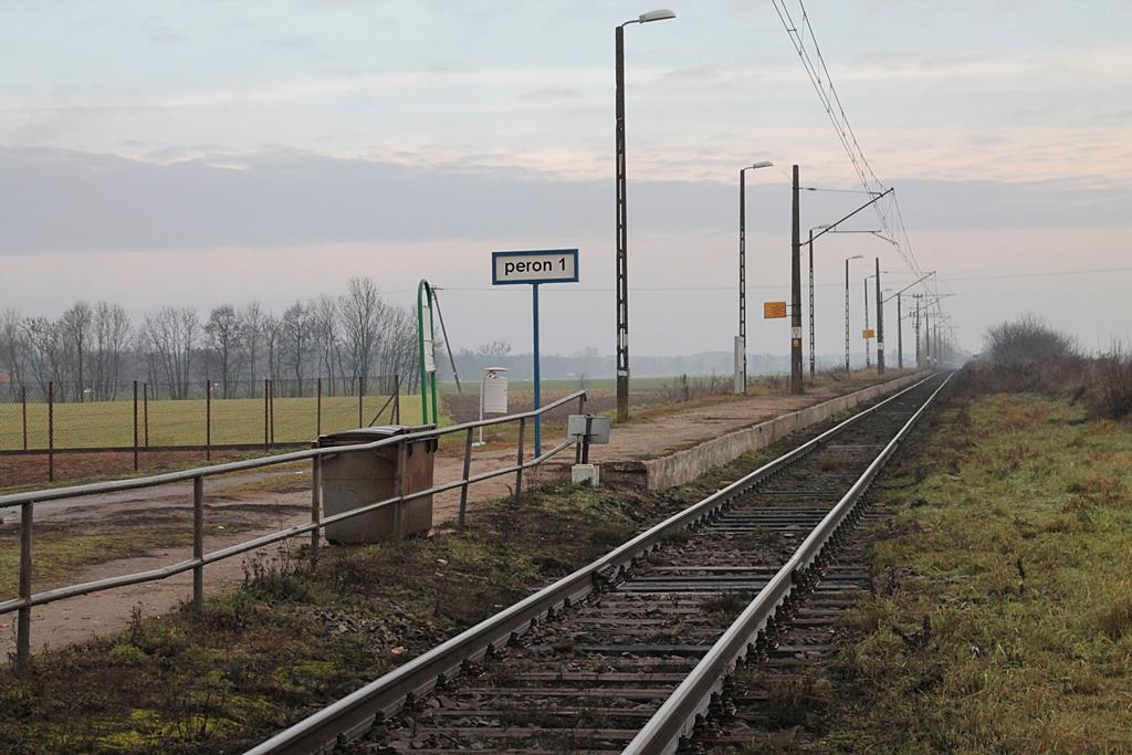 Widok na koniec peronu i w kierunku Obornik Wielkopolskich/Poznania Głównego. Kolejowy budynek mieszkalny znajduje się po prawej stronie.